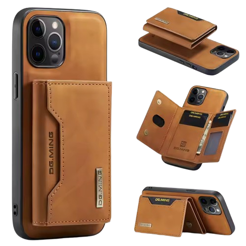 Husa magnetica din piele pentru iPhone culoarea Maro cu suport pentru card+Folie gratis